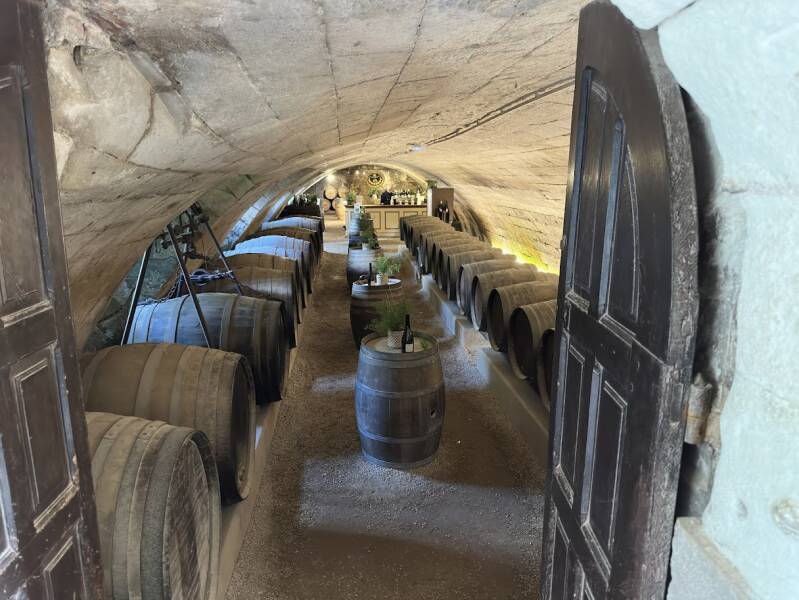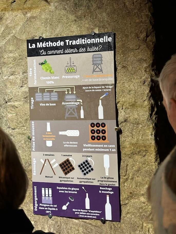 Vouvray stores their wine in caves under the town. each path in the cave, has the same street name as above. We were able to see 10,000 bottles of wine stored in one small area of the massive winery!