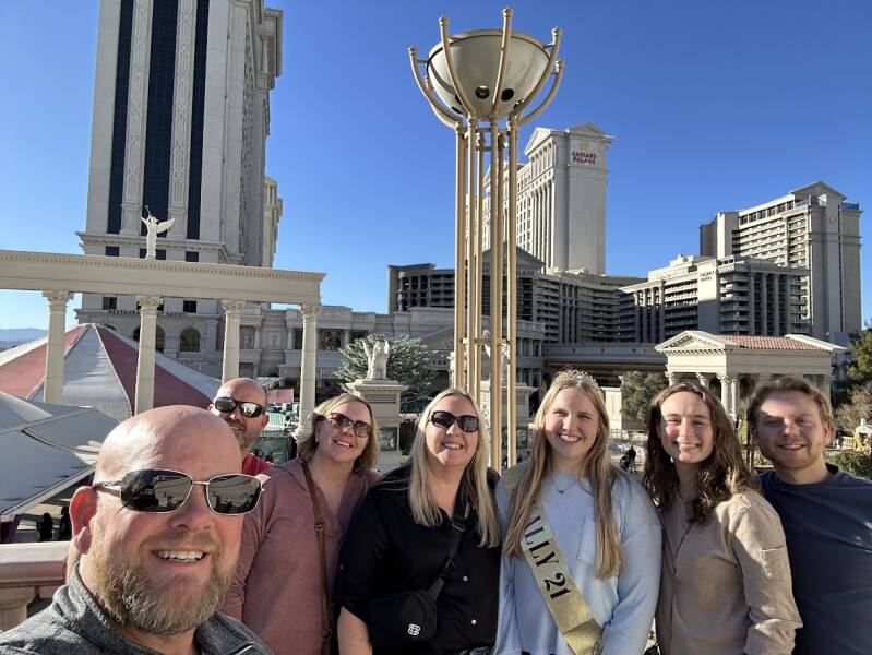 December 2024 was shaping up to be a big month for our family—our middle child and only daughter, GraceAnne, was turning 21 (cue the confetti!), and it was also Jamie's final year in his fabulous 40s. We figured, why not make it a double celebration and head to the entertainment capital of the world—Vegas! So, we packed our bags and kicked off what would be a whirlwind adventure. The excitement started bright and early on Friday, December 6, 2024, with our flight set to take off from Indianapolis at 10:00 am sharp. Let the adventure begin!